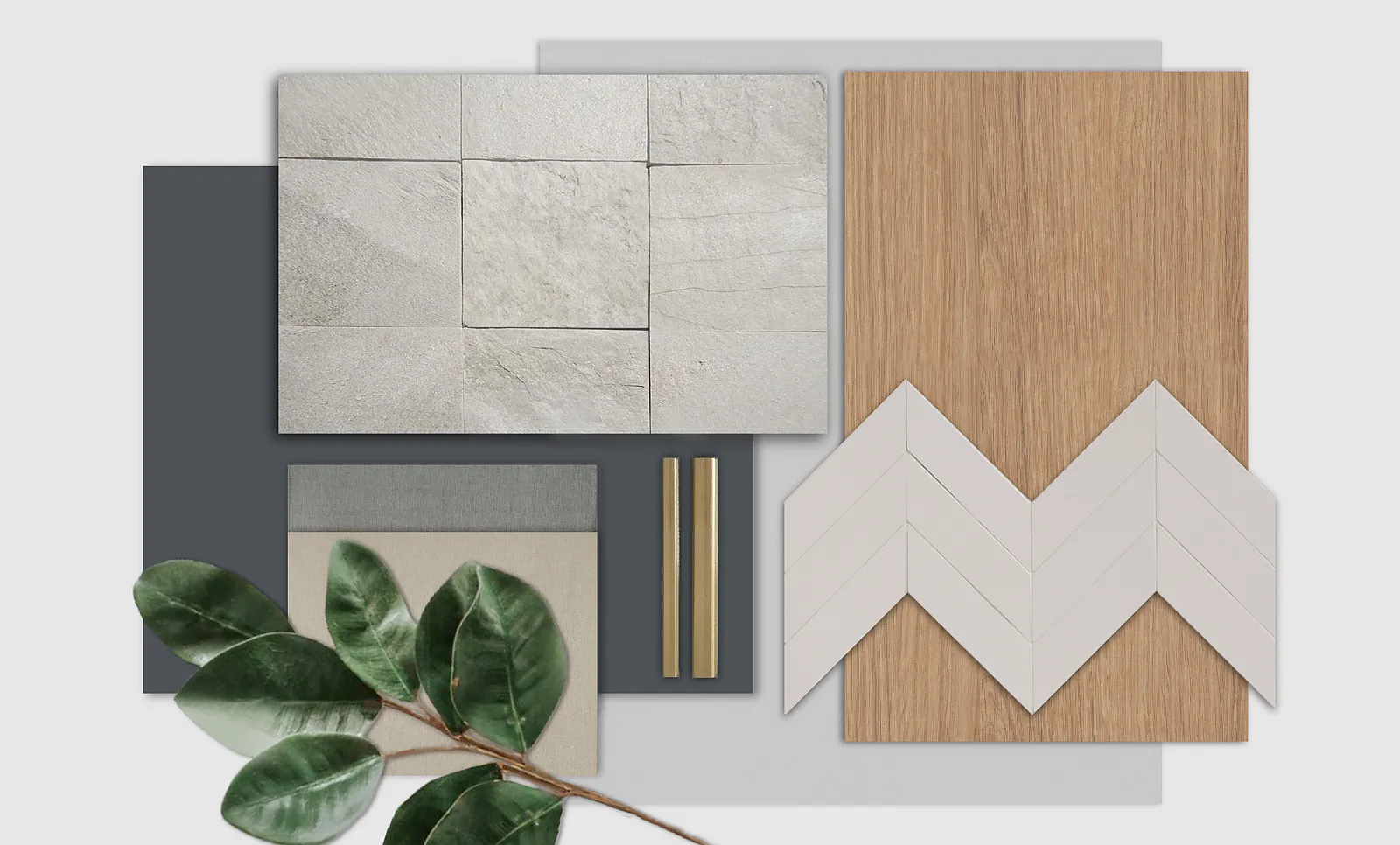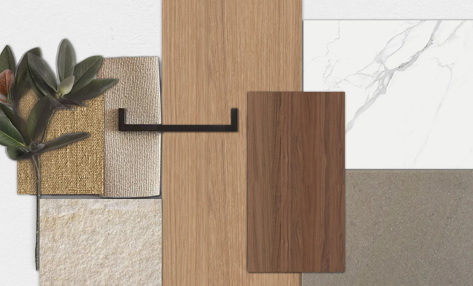 Bei dieser Wohnung aus den 70er-Jahren galt es, die Oberflächen zu sanieren. In der Diskussion um den Charakter des Raumes entstanden drei Material- und Farbcollagen. Raumorientierung, Raumabfolgen und Lichtsituation widerspiegeln sich in allen Konzepten ganz individuell.