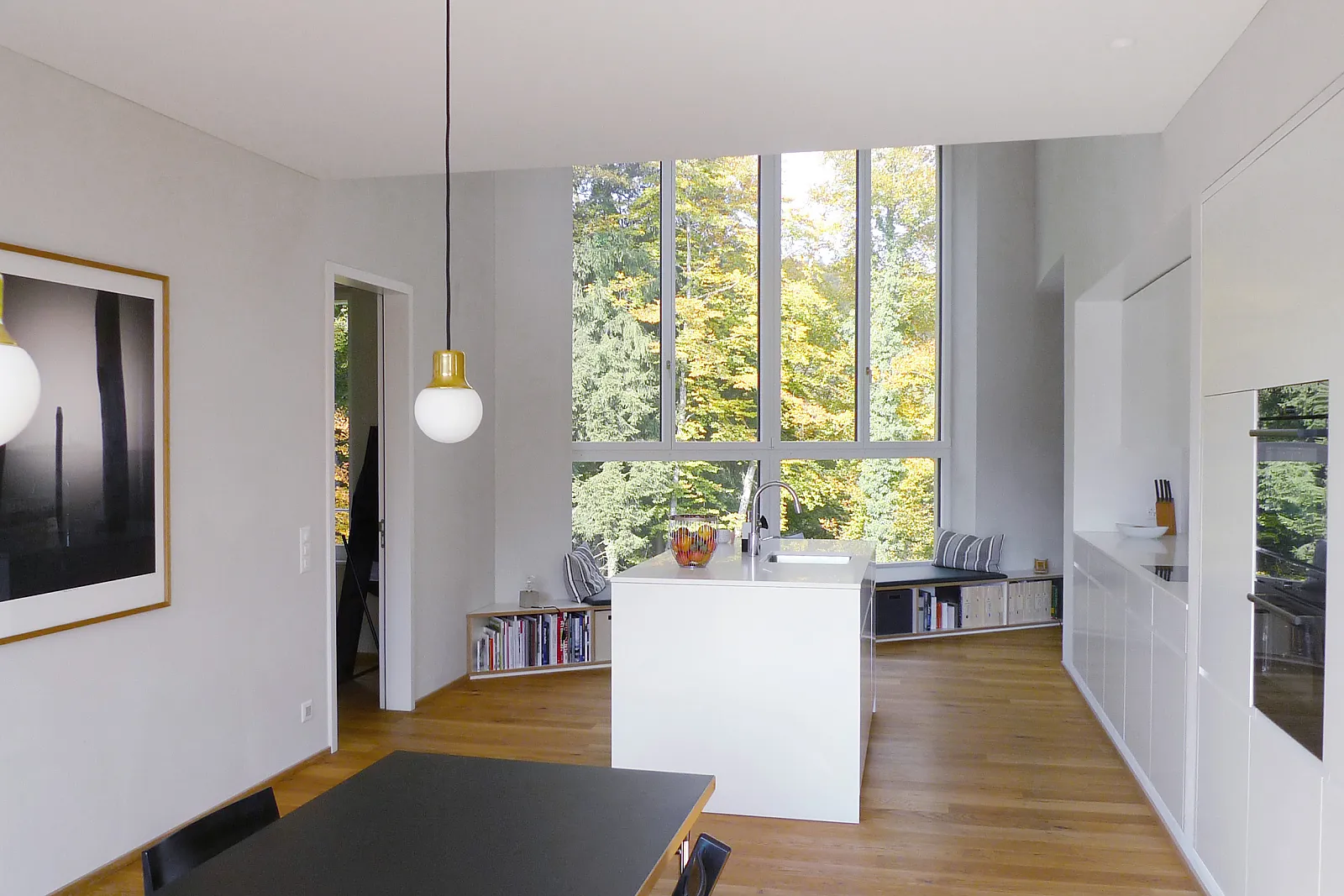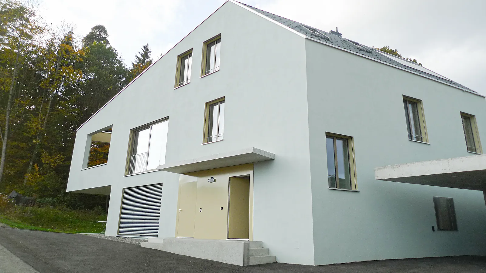 Im Sinne der Verdichtung wurde auf der idyllisch gelegenen Waldrandparzelle ein Einfamilienhaus mit Einliegerwohnung geplant, welche als eigenständige altersgerechte Gartenwohnung konzipiert ist. Die Idee des Mehrgenerationenhauses wird hier verwirklicht.