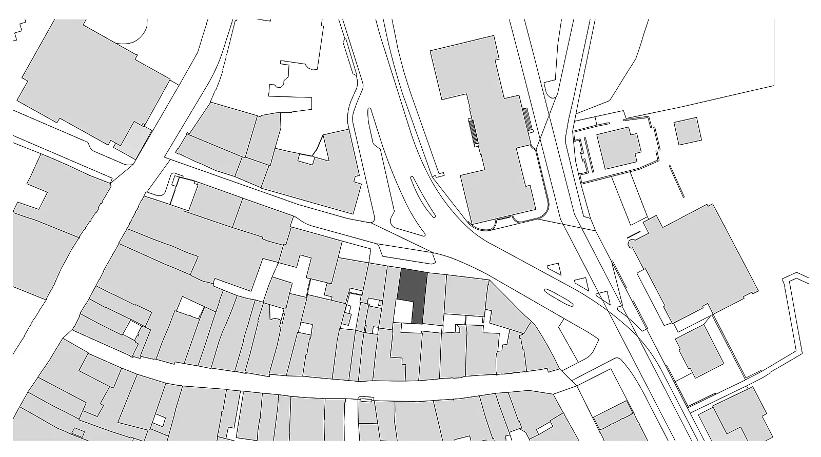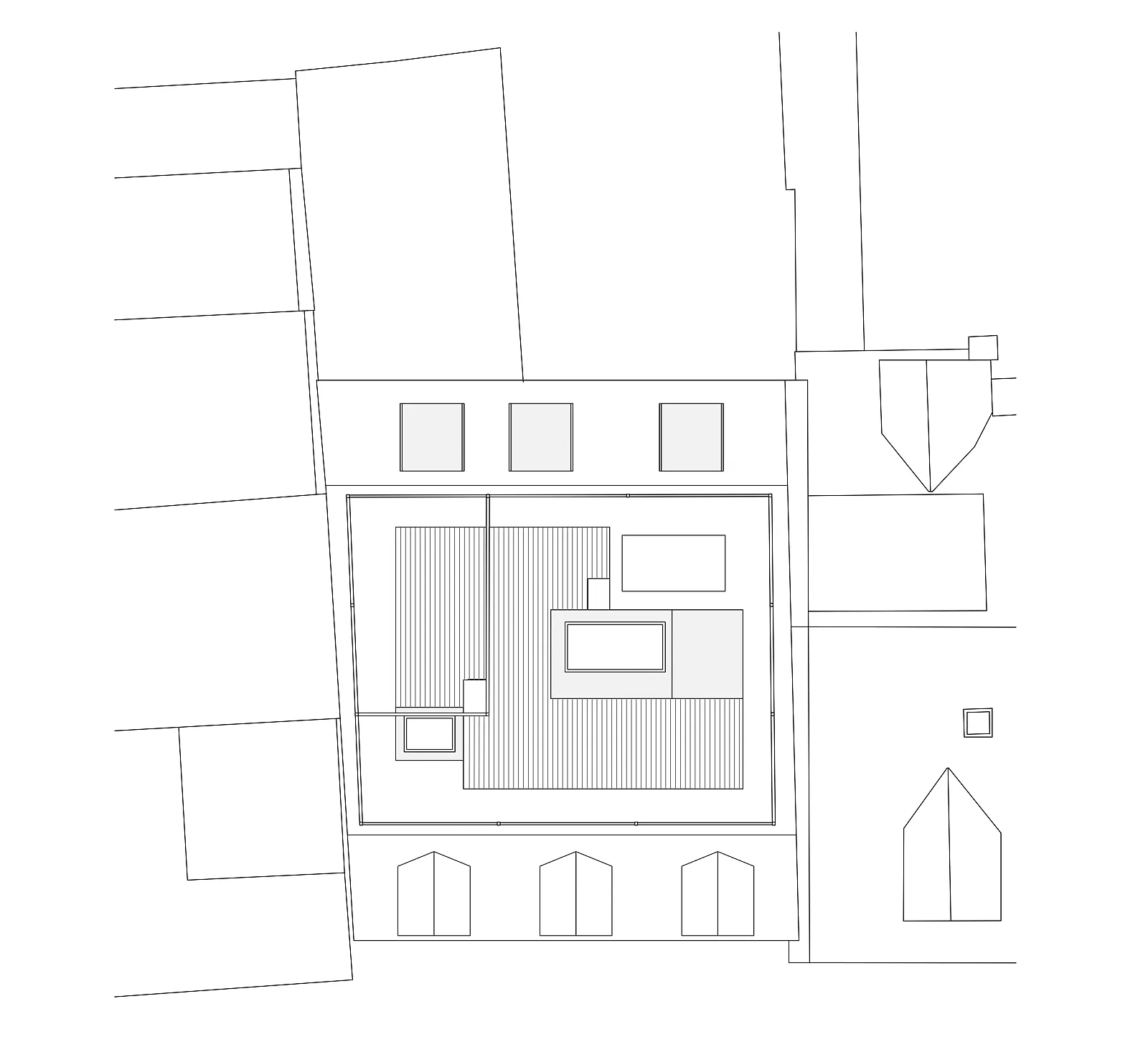 Das Nord-Süd orientierte Haus grenzt im Süden an einen kleinen und begrünten Innenhof mit ehemaligem Waschhaus. Gegen Norden öffnet sich das Gebäude zum Schützengraben und zur stark befahrenen Bachstrasse hin.