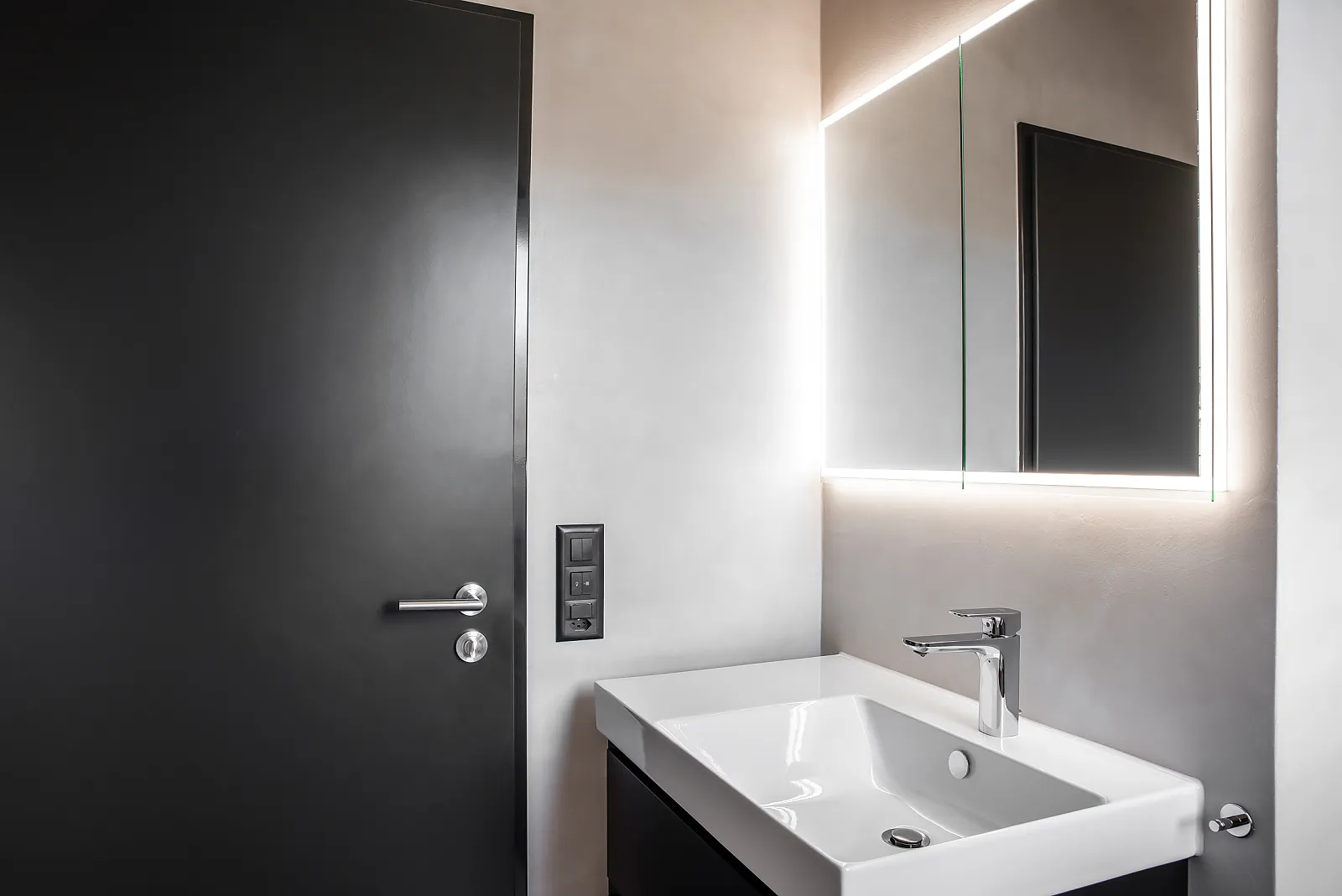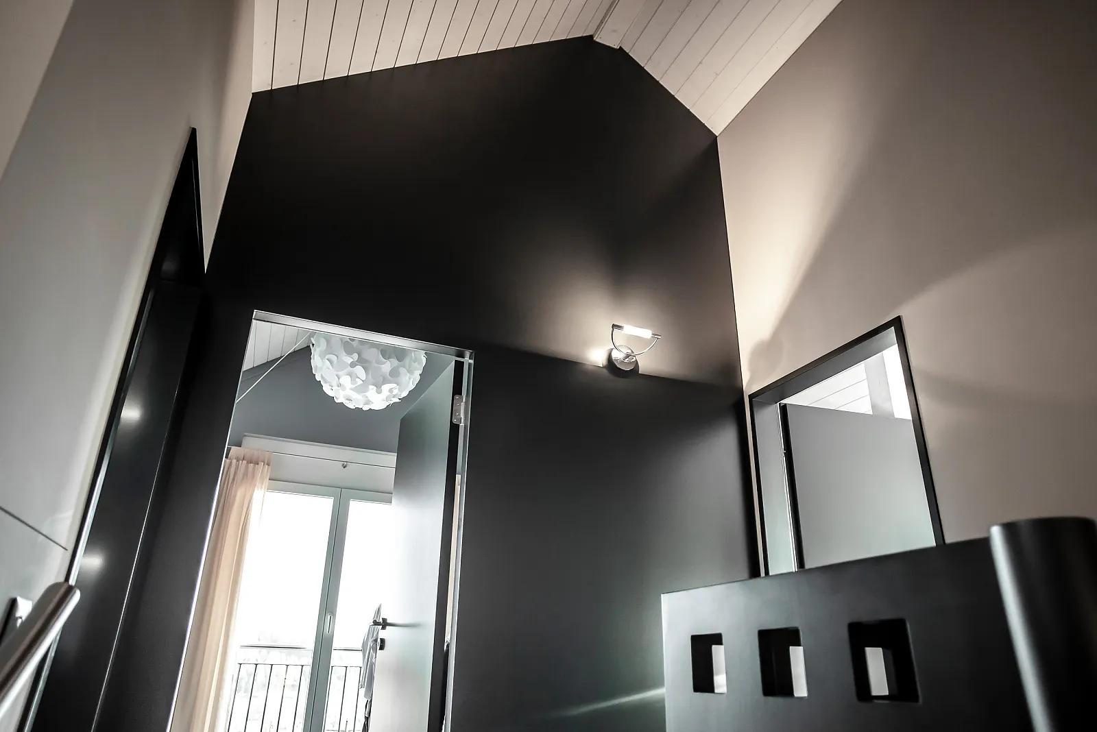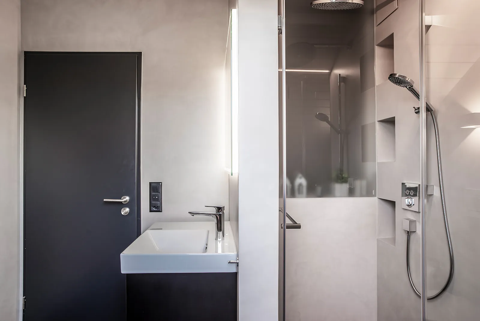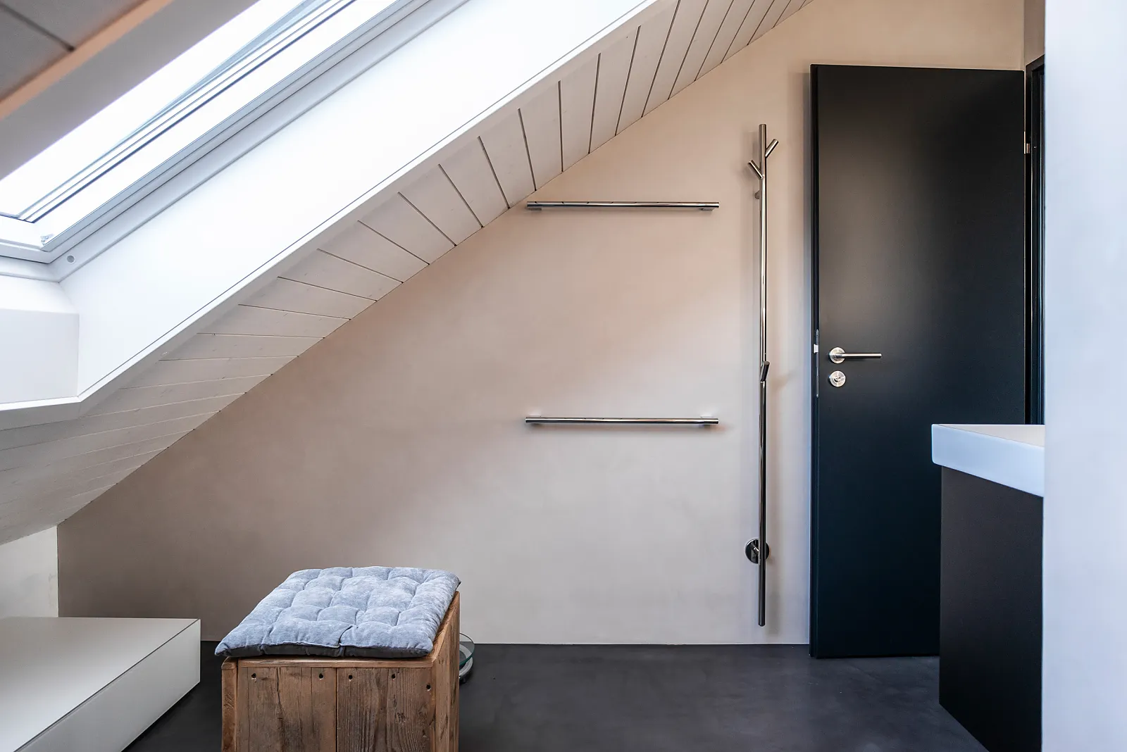 Die Badsanierung und der Umbau des Dachgeschosses soll mehr Platz für die Familie bieten. Daraus entstand in enger Zusammenarbeit mit der Bauherrschaft neuer Wohnraum, der durch die Individualität im Innenausbau und das Farbkonzept die Persönlichkeit der Bewohner abbildet.